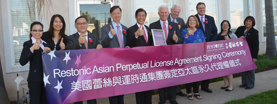 从1983年,运时通控股集团成为美国蕾丝床垫的第一个国际授权代理,至今已经34年。经过34年的鼎力合作,美国蕾丝床垫与运时通控股集团的合作迎来了新突破。于美国时间2017年3月3日下午3点,在美国圣地亚哥Escondido,美国蕾丝床垫董事长Bob Sherman 总裁Ron Passaglia与中国家居品牌联盟主席、运时通控股集团董事长陈燕木Jack Chen签订美国蕾丝亚太地区永久代理权协议。自此,运时通控股集团获得美国蕾丝床垫亚太地区的永久代理权,运时通控股也成为美国蕾丝第一家国际永久授权合作公司。